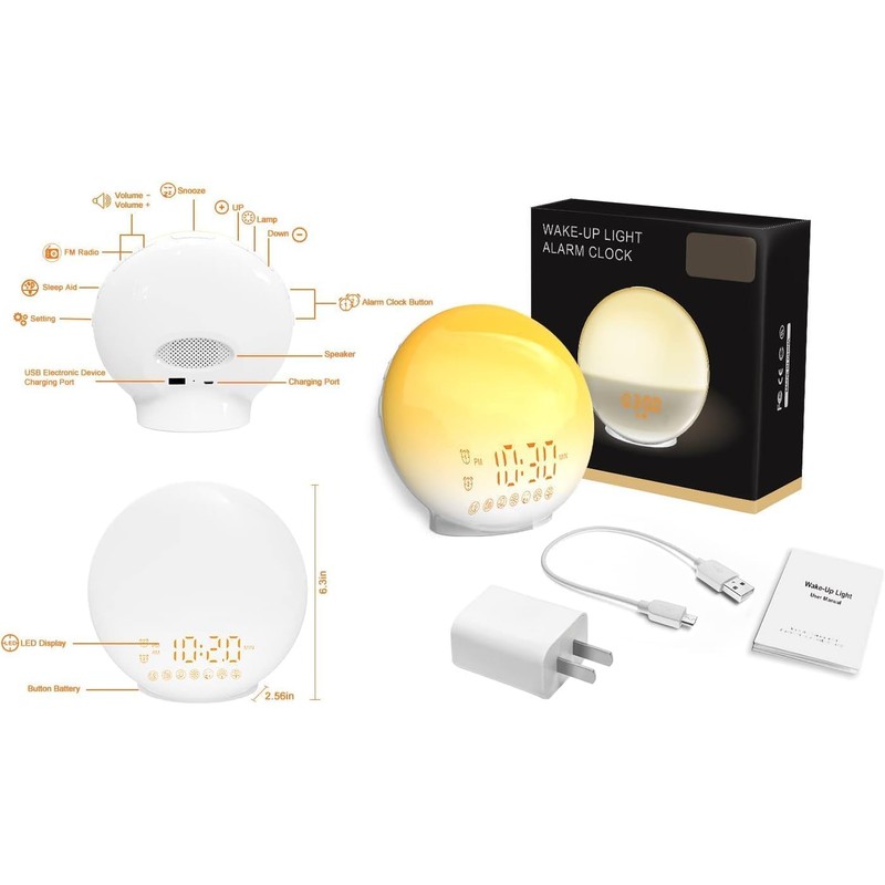 - 13 intelligente Funktionen Sonnenaufgangswecker Wecklicht- Sonnenaufgangssimulation Sonnenuntergangssimulator Einschlafhilfe mit Timer Dualalarm Fm-Radio 76- 108 mhz 7 wei?es Rauschen (Vogel/Ozean/Strom/Pieps/Windglocke/Klavier/weiche Musik) 7 Farben (blau, Indigo, Violett, Rot, Orange, Gelb, Grn) 20 Helligkeitsstufen Uhranzeige als hell, mittel, keine Beleuchtung 5v/2. 4a usb-anschluss zum laden weiterer ger?te tap snooze ?eingebauter Pufferakku ?16 einstellbare lautst?rke ?12h / 24h zeitanzeige