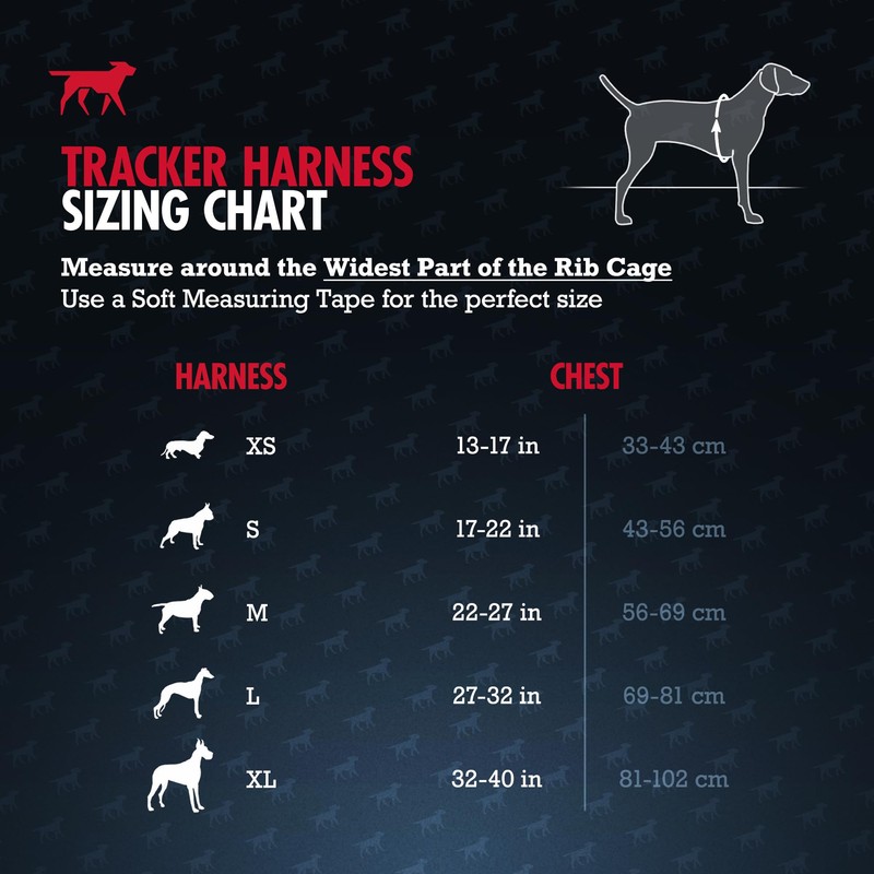 - BEST DOG HARNESS SIZING C This is a dog harness large breed owners love! TuffPupper designed this easy on/off dog harness in 5 sizes (XS - S - M - L - XL | view product images for sizing chart). Measure around the widest part of your dog's chest directly behind the front legs to ensure a proper fit. Don't worry pet owners, our adjustable dog harness is designed to fit every size dog!