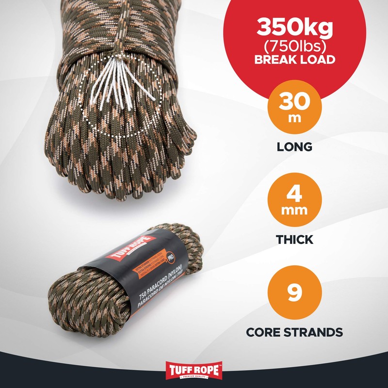 TUFF ROPE® Pro Paracord 750 (Nylon) Extra Strong Paracord Rope with 9 Core Strands 350 kg Breaking Load (Camouflage)