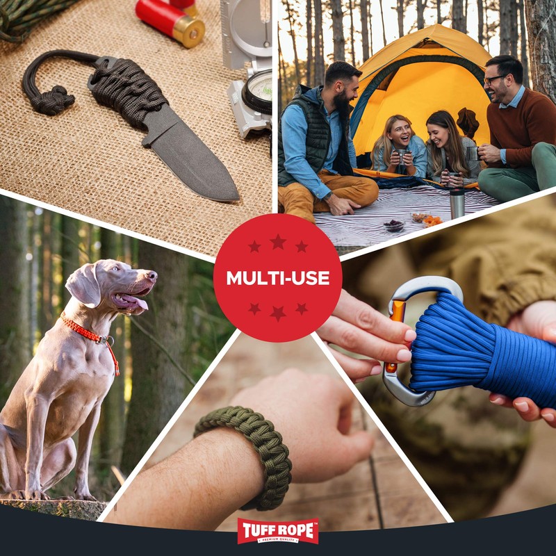 - ▶ Multi-purpose: 1) For knotting bracelets, collars or knife handles and axe handles; 2) Use as a leash (e.g. dog lead); 3) As a rope when camping, e.g. for a tent or for attaching a wet tarpaulin; 4) Survival and outdoor training; 5) Rope or sailing rope.