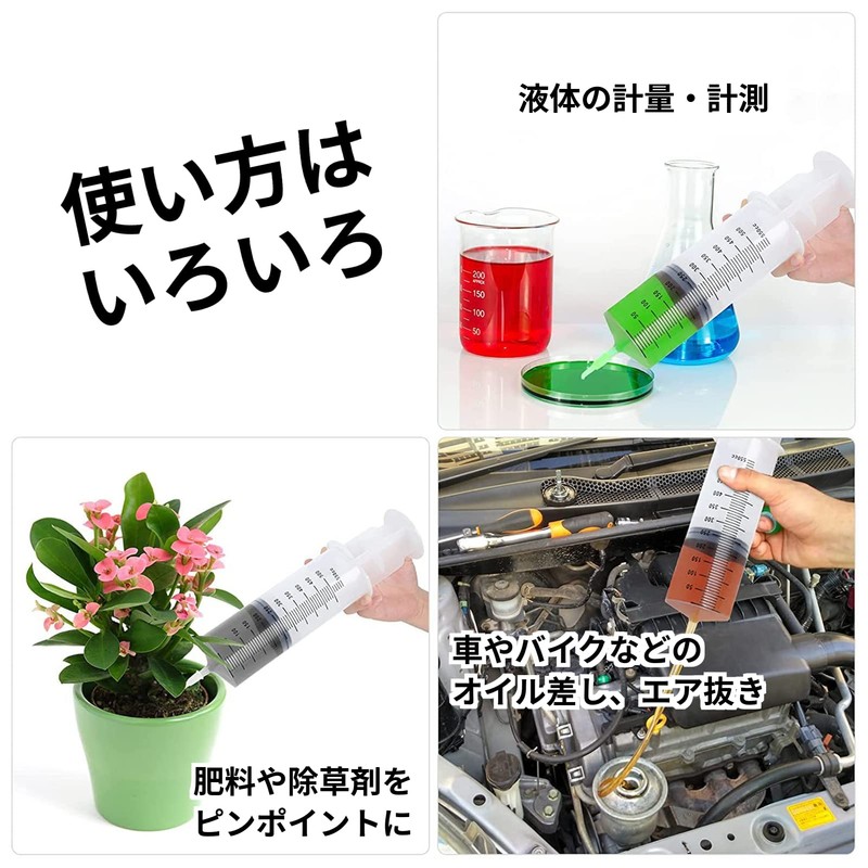 車やバイクなどのオイル差し、エア抜き。肥料や液体の計量・計測など、多用途です。