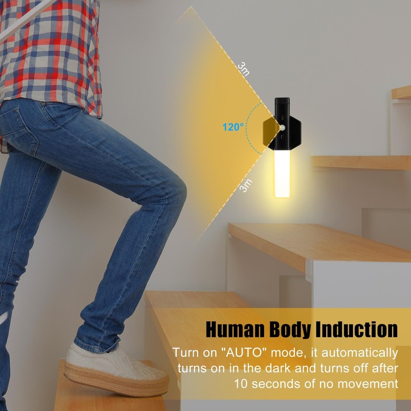 - Versatile 3 in 1 Feature: these rechargeable wall sconces feature a multifunctional 3 in 1 capability; When switched to 'AUTO' mode, the motion sensor will be activated; The night light will automatically turn on in the dark when it detects motion, and it will turn off after 10 seconds of no movement, it stays off when there are lights around; In 'ON' mode, you can also use the constant lighting mode; The 'FLASH' mode allows it to be applied as a portable handheld flashlight