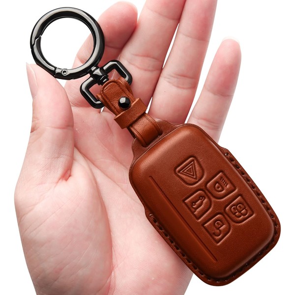 Tukellen Compatible with Range Rover Leather Key Fob Cover with Keychain Key Shell Compatible with Range Rover Evoque Velar Sport Discovery Freelander2 LR4 Sport-Brown