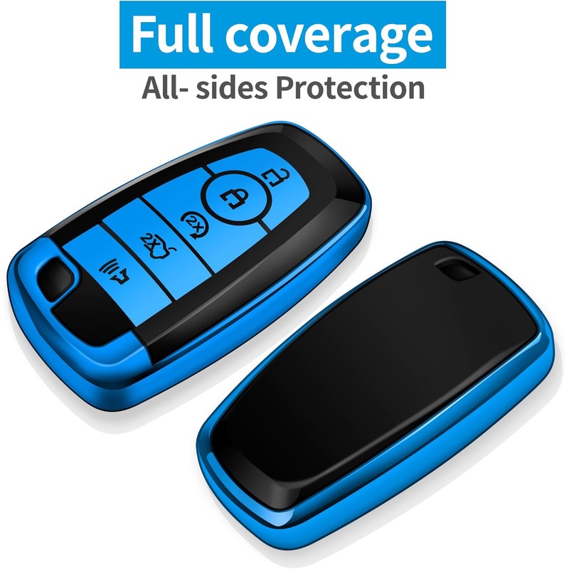 Tukellen for Ford Key Fob Cover Soft TPU Full Protection Key Case Compatible with Fusion Explorer Escape F150 F250 F350 F450 F550 Mustang Edge Maverick Expedition Lincoln Aviator (Blue, 5 Buttons)