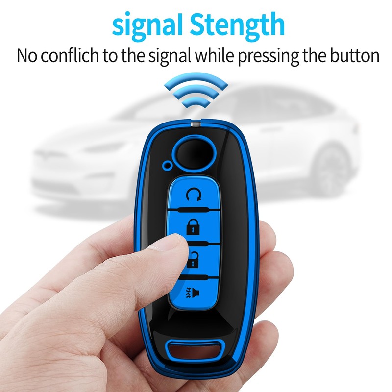 Tukellen for Nissan Key Fob Cover, Premium TPU Plated Case for 2023-2025 Pathfinder Rogue Ariya Versa Kicks Sentra Armada Murano Smart Remote Key Protector (Blue, 4 Buttons-A)
