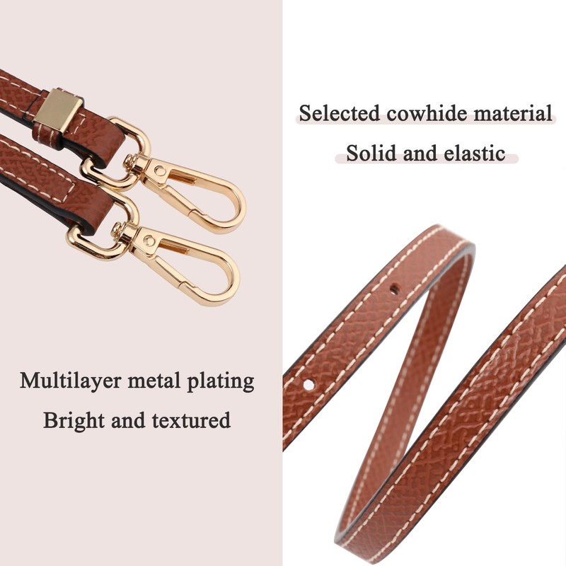 TUKYWAN Bag Straps for Longchamp Mini Bag,Purse Strap Replacement Crossbody Adjustable(Strap Set,Brown Gold)
