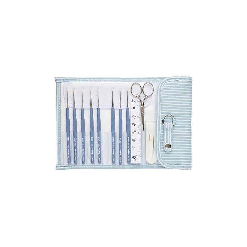 - Set Contents: Lace needle with cushion grip (No.0, No.2, No.4, No.6, No.8, No.10, No.12, No.14), high-grade thread cutting scissors (silver), 2 needles, spoon, case