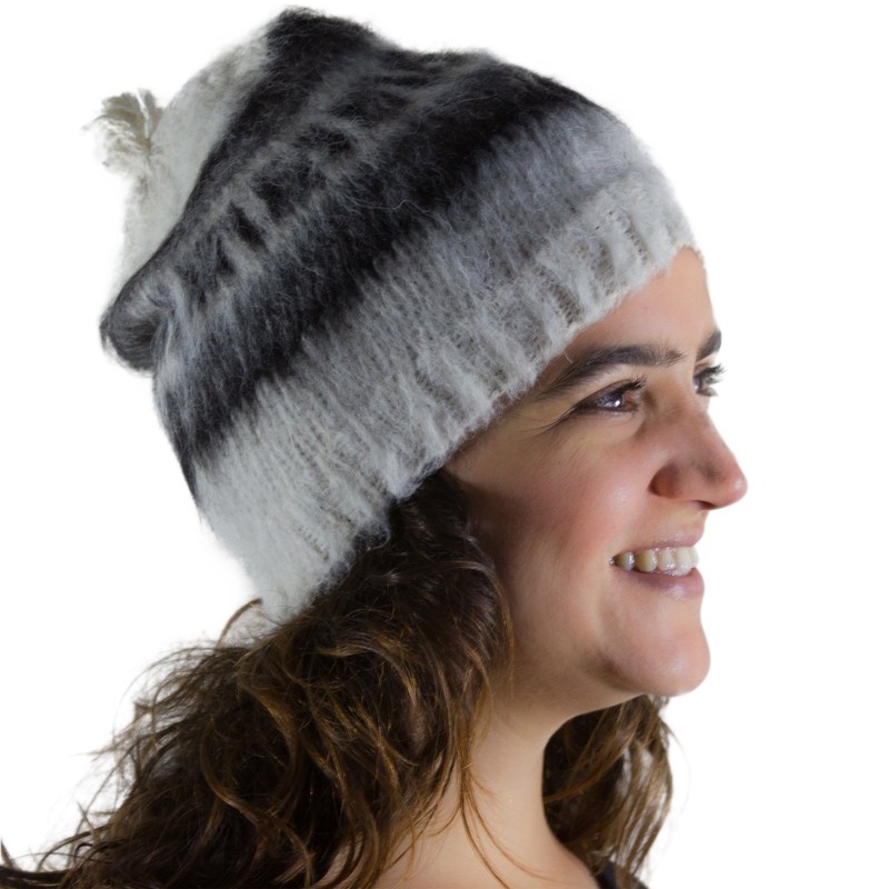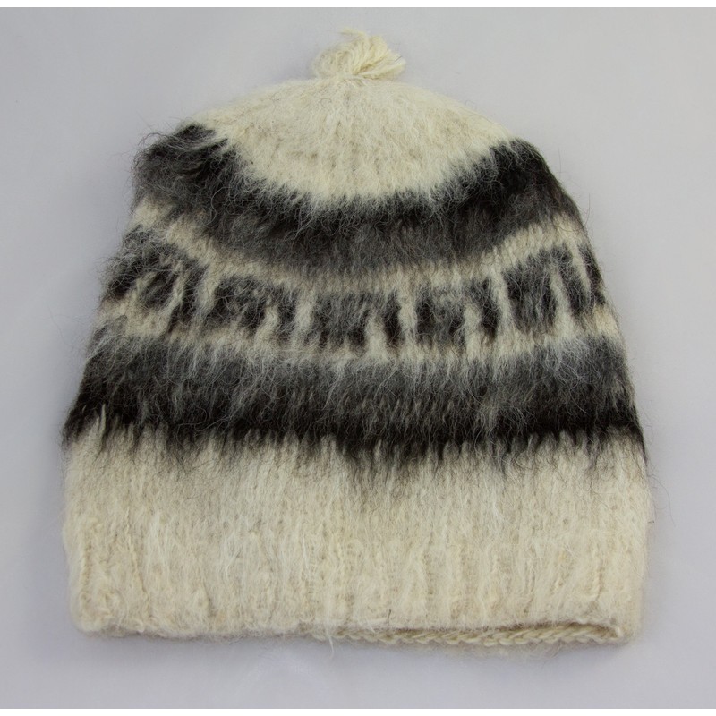 Tumia LAC Alpaca Round Adult Off-White Hat, Available in a Range of natual Wool Colours - Fair Trade and Hand-Knitted in Bolivia. One Size