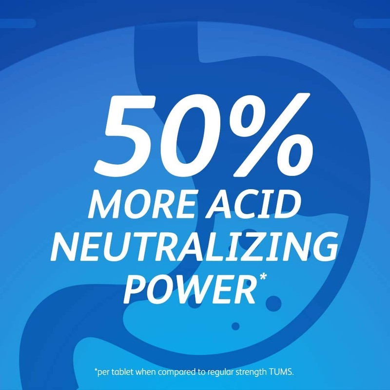 - EXTRA STRENGTH POWER: Extra strength dosage with 50% more of the acid fighting active ingredient per tablet than TUMS Regular Strength.