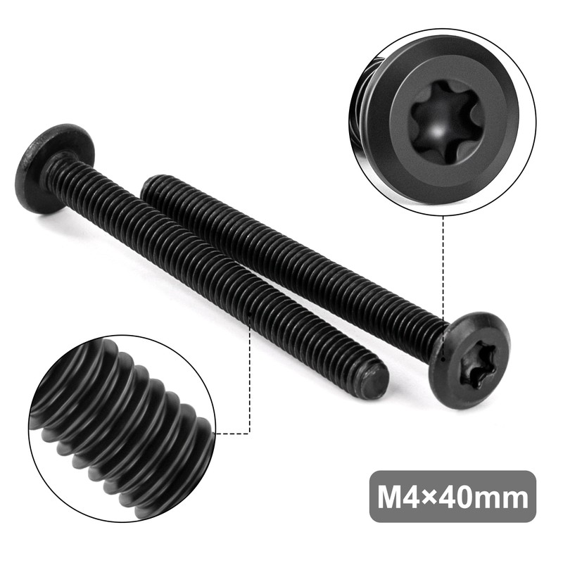 - Specifications: Pack of 20 M4 x 40 mm black flat head screws with trox. Head Shape: Flat Head Drive Type: Torx Equipped with T20 Allen key to meet daily needs