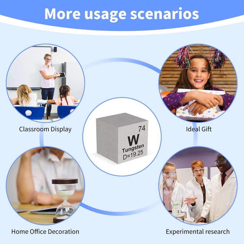 - 【Reliable Material】- Tungsten cube is made of tungsten metal with 99.95% purity, very high density, about 19.3g/cm³, with good thermal and electrical conductivity, safe, reliable and non-toxicity