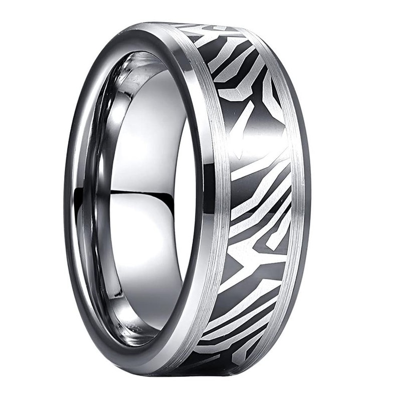 TUNGSTORY 8 mm Tungsten Rings with Damascus Steel Pattern Wedding Rings Polished Bevelled Brushed Edges Friendship Rings Comfort Fit for Men Women Size 54 to 67, Tungsten Carbide