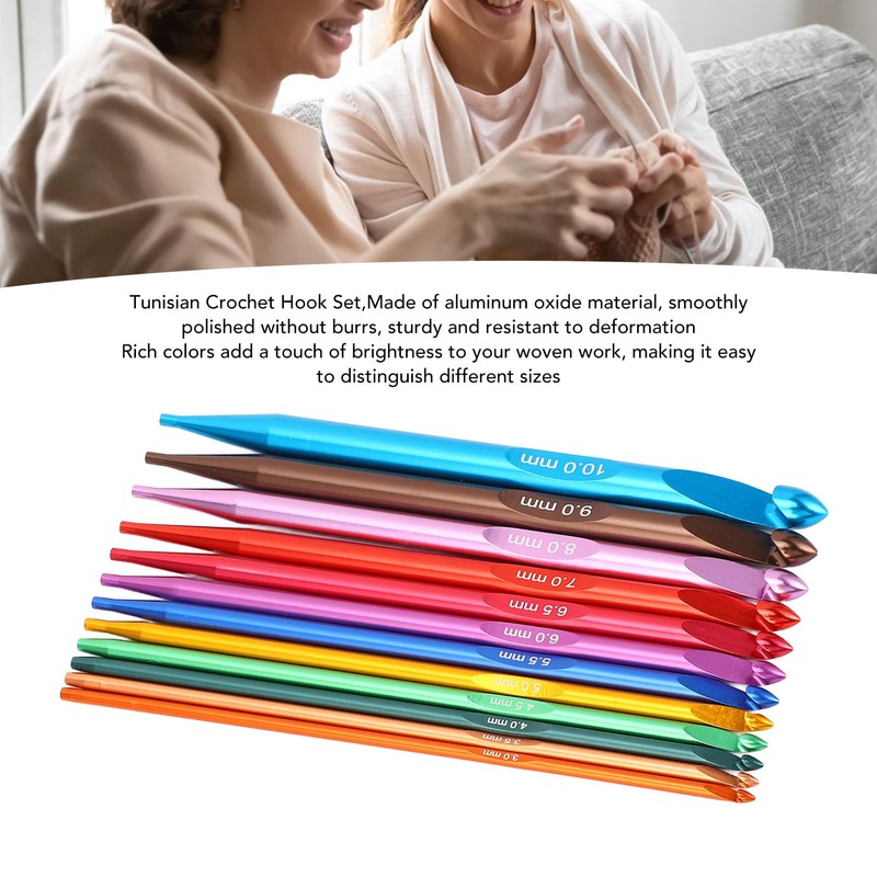 Tunisian Crochet Hooks Set with Cable, 12 Pcs Crochet Hook, Colorful Interchangeable Aluminum Stainless Steel Knitting Hook with PU Bag