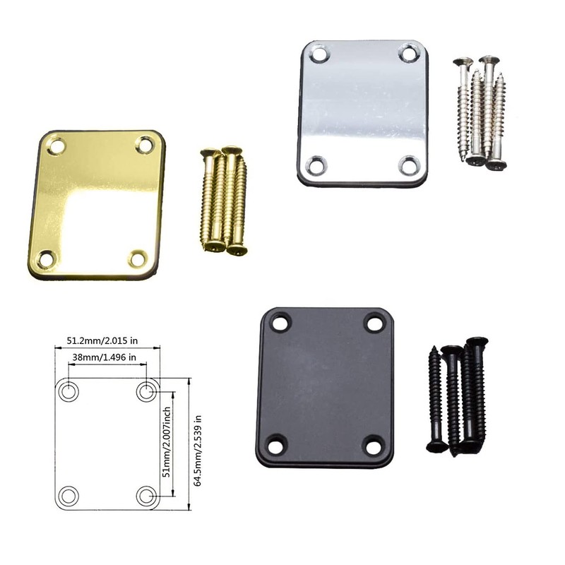 - The neck joint plate is made of metal and the protect plate is made of plastic. size: (L x W): 64 mm* 52 mm (2.52 in * 2.05 in ) Great for attaching necks to electric guitars.