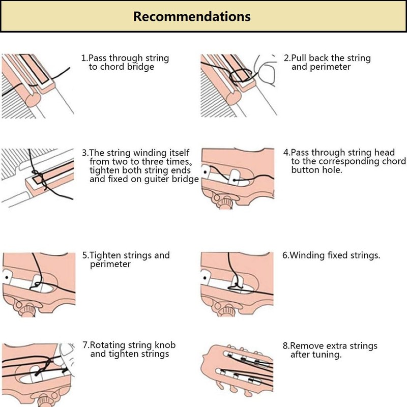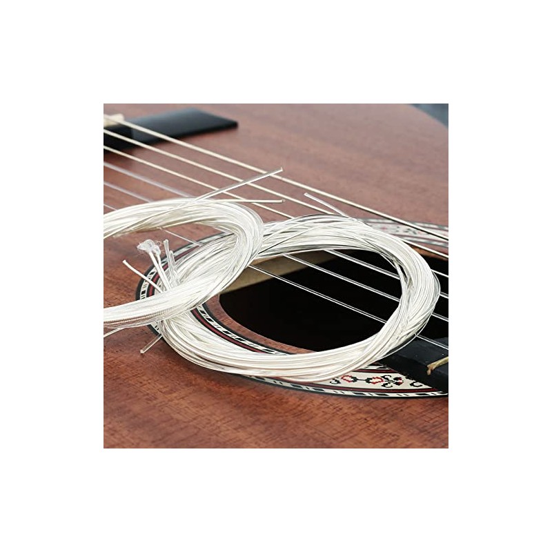 Features:These strings have normal standard tension to ensure exceptional tone and beautiful sound, perfect balance of tone and corrosion resistance. Non-Ball End, Apply to all sizes classical guitar, nylon guitar.6 different strings: E string (1st) .0285"(0.72mm) Nylon strings B string (2nd) .0325"(0.83mm) Nylon strings G string (3rd) .041" (1.04mm) Nylon strings D string (4th) .030" (0.76mm)Alloy strings A string (5th) .036" (0.91mm) Alloy strings E string (6th) .044" (1.12mm) Alloy stringsPackage Content:5 Set x Nylon Guitar Strings(30pcs)