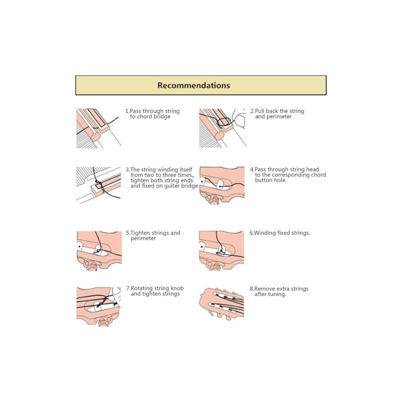 - Clear Nylon for E-1st/B-2nd/G-3rd and Nylon Core Silver-Plated Copper Alloy Wound for D-4th/A-5th/E-6th.