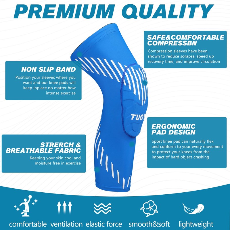 • Protective EVA Pads: Intergrated with 10mm thick foam padding strategically placed to protect every angle of the knee cap. Perfect in mitigating and dispersing shocks and impact. Provides snug fit and compression support.