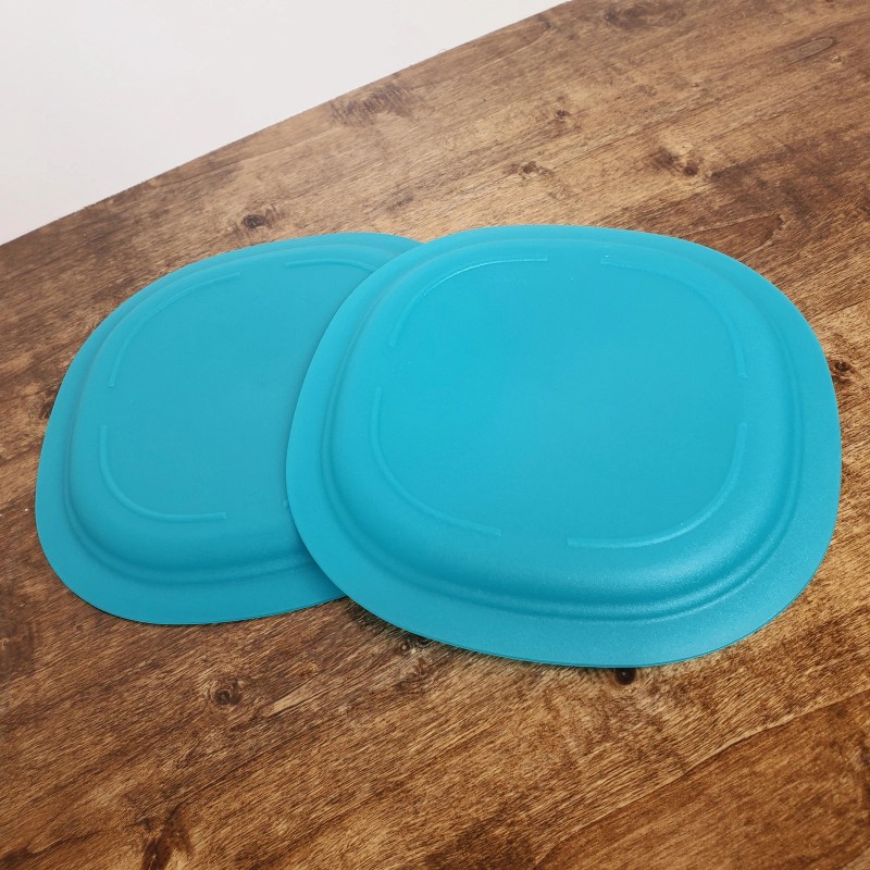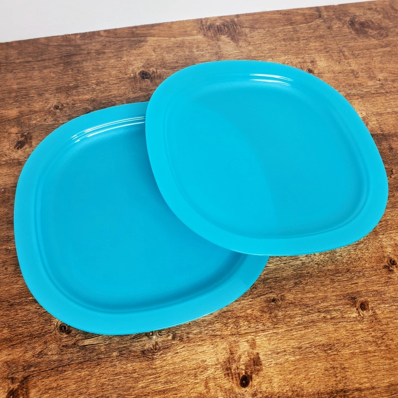 Tupperware Microwave Reheatable Teal rounded square plates 3398 set of 2