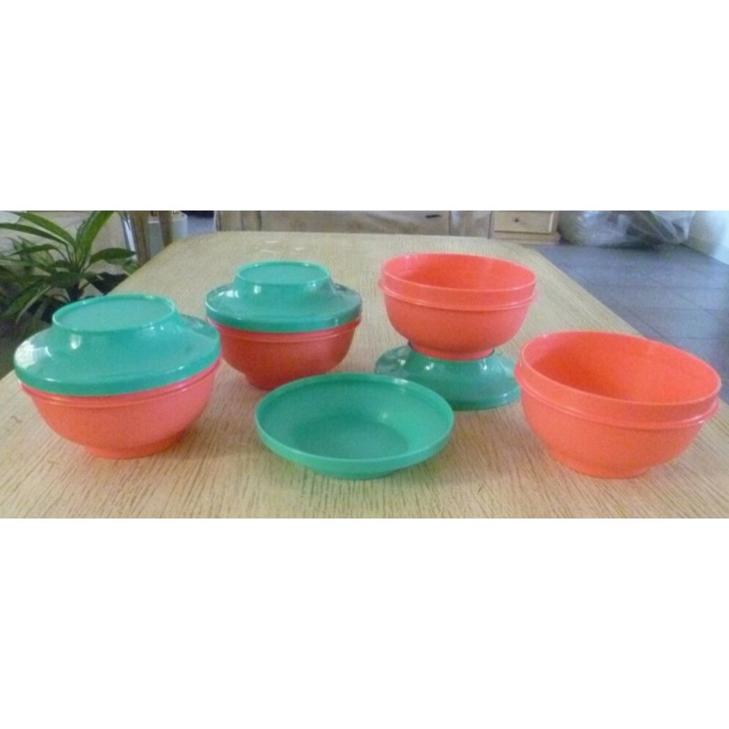 Tupperware New Tupperware Oriental Pedestal Bowls Mint Lids + Guava Peach Stacking Tumblers