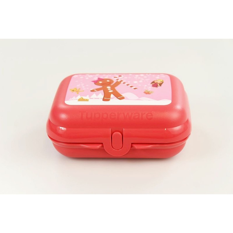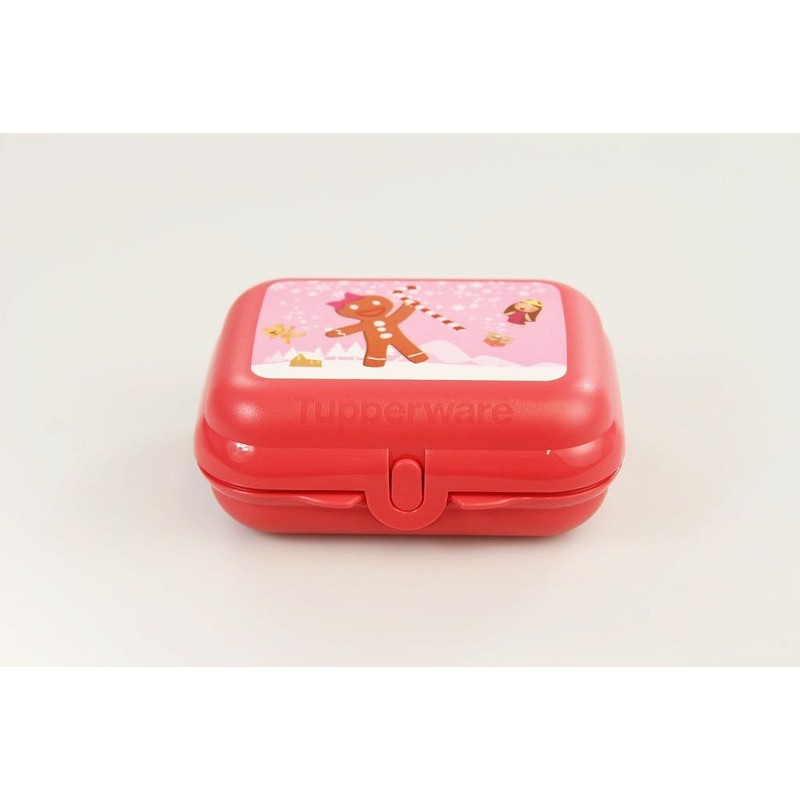 TUPPERWARE Oyster Box Snack Keeper orange red gingerbread motif