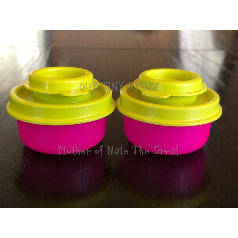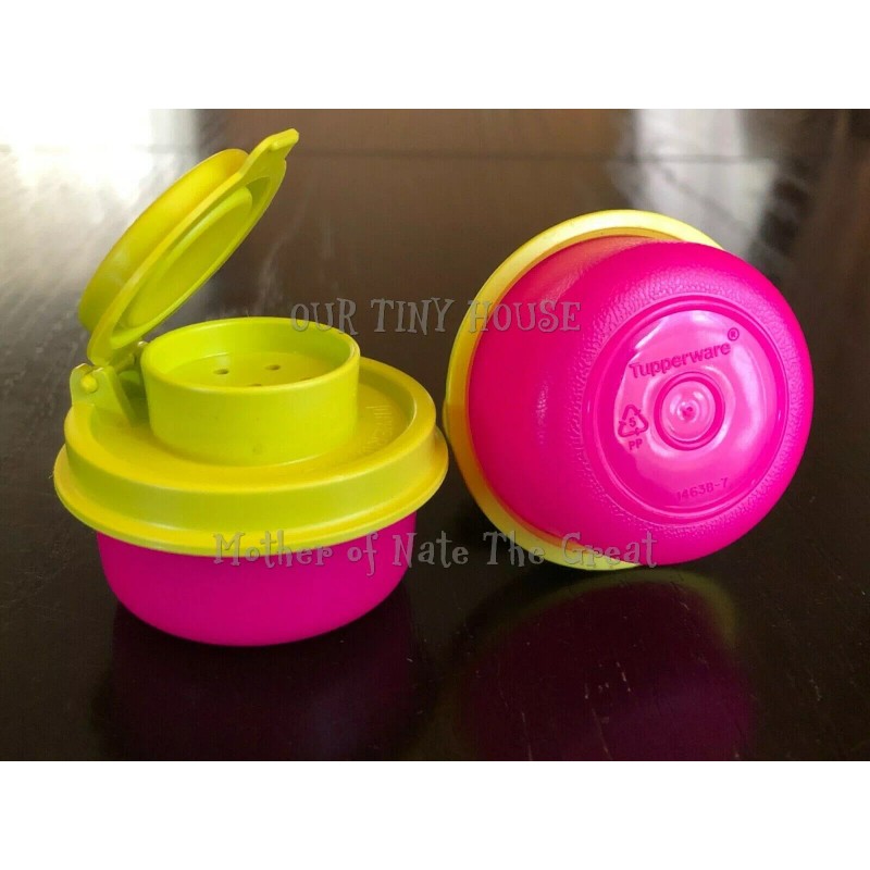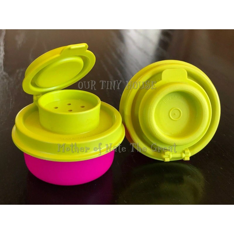 TUPPERWARE SMIDGET Salt and Pepper Shakers Spice Mini Travel Green & Neon Pink