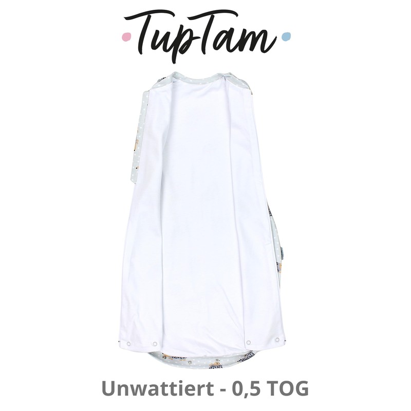 TupTam Baby Swaddling Bag, Oeko-Tex Certified Materials, Padded Baby Sleeping Bag, 2.5 Tog, Unisex, Unpadded 0.5 tog / hedgehog grey