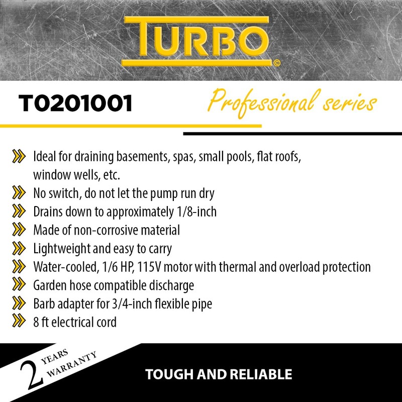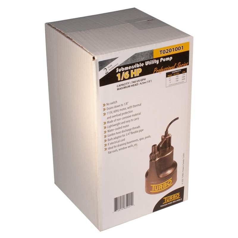 Turbo 1/6HP Submersible Utility Pump without Switch