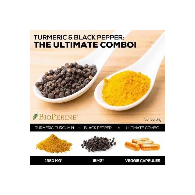 - CURCUMINA TURMÉRICA CON BIOPERINA: Complejo de curcumina de cúrcuma T3 premium de 2600 mg, con curcuminoides estandarizados al 95% y 20mg de bioperina (pimienta negra) para una mejor absorción. POWERHOUSE NUTRICIONAL: La cúrcuma es una de las hierbas más poderosas del planeta. La curcumina, uno de los compuestos principales del polvo de cúrcuma, es una fuente inagotable rica en nutrientes. CON BIOPERINA PARA LA MEJOR ABSORCIÓN: El extracto de pimienta negra mejora la biodisponibilidad de muchas hierbas y especias. Nuestro extracto de curcumina de cúrcuma con extracto de pimienta negra Bioperine proporciona una absorción hasta 2000 veces mejor que el consumo de cápsulas de cúrcuma solo. FÓRMULA DE CONFIANZA: Formulada por profesionales y fabricada en los EE. UU. siguiendo estrictas pautas de GMP. Probada por terceros para garantizar la calidad y la pureza de cada lote. La curcumina de cúrcuma de mayor potencia con pimienta negra bioperina Se ha demostrado que la curcumina de cúrcuma apoya la salud de las articulaciones, el corazón y el cerebro. Nuestro suplemento de cúrcuma presenta curcuminoides estandarizados de alta potencia al 95% con BioPerine (extracto de pimienta negra) para una mejor absorción de la cúrcuma. Características: 1) 2,600 mg de curcumina de cúrcuma con 95% de curcuminoides 2) 20mg de extracto de pimienta negra para una mejor absorción 3) Totalmente natural, libre de transgénicos 4) Hecho en los Estados Unidos. Aviso legal