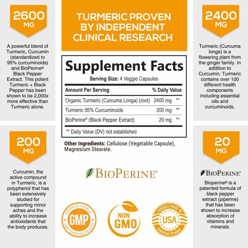 Turmeric Curcumin 120caps Con Bioperina 2600mg. Hecho En E.u - Producto Original de Alta Calidad, Entrega Rápida y Segura, Garantía Incluida