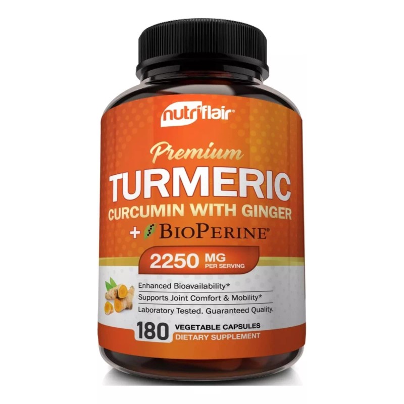 Turmeric Curcumin Ginger 2250mg (180 Cápsulas), Hecho en EE. UU., Sabor Neutro.