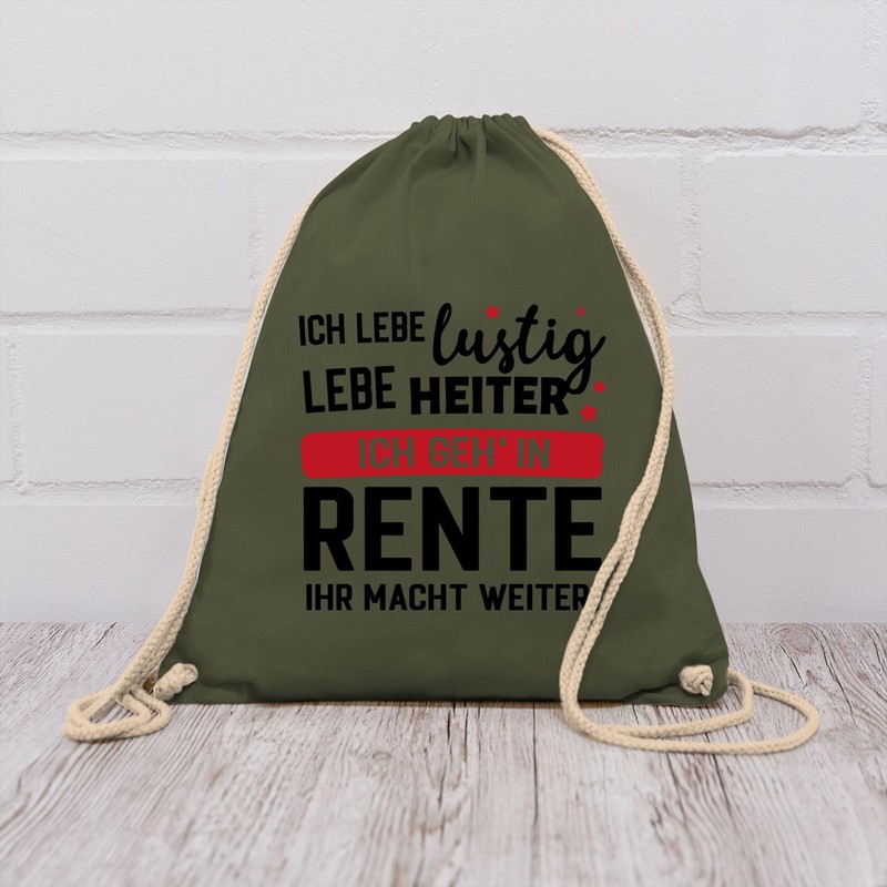 Turnbeutel Rucksack - Rentner Taschen - Ich geh in Rente - Ihr macht weiter. - Unisize - Olivgrün - rentner, zur pensionierung beutel fuer ruhestand abschied kollegin tasche ruhestand, frau weiter