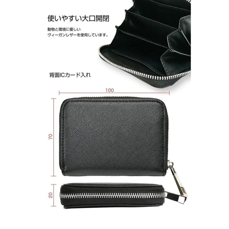 - Size: Width 3.9 x Height 2.8 x Width 0.8 inches (10.0 x 7.0 x 2.0 cm); Specifications: Storage compartment: 3 card slots: 2, IC card slot: 1. Material: Vegan leather (gentle leather material that is not derived from animal materials. )