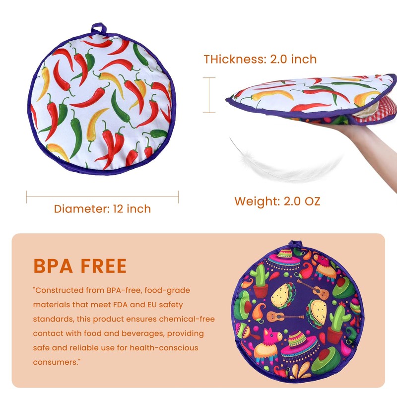 - [Microwave & Cleanup Friendly] Just pop it in the microwave and enjoy evenly warmed tortillas in minutes. The hand-washable polyester material dries quickly and resists stains, making maintenance effortless.