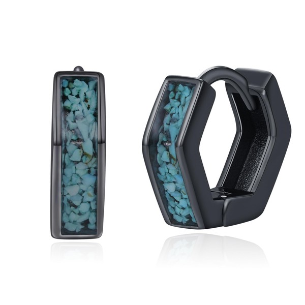 Turquoise Hoop Earrings 925 Sterling Silver Small Black Hexagon Geometric Huggie Earrings Valentine's Day Jewelry Gifts for Women Men