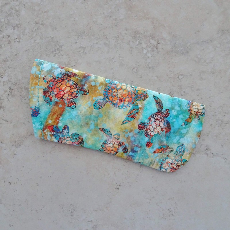 Turquoise Sea Turtle Batik Sunglasses or Eyeglasses Case, Soft Case for Glasses