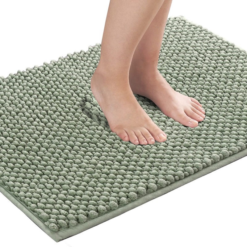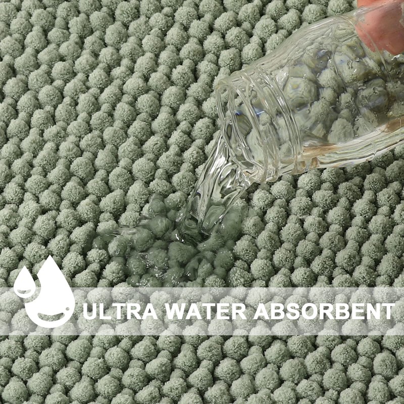 Turquoize Bathroom Rugs Non-Slip Chenille Bath Mat for Bathroom 17 x 24 Inches Extra Soft and Absorbent Shaggy Bathroom Rugs, Machine Washable Perfect for Bathtub and Shower Floor, 24" X 17", Sage