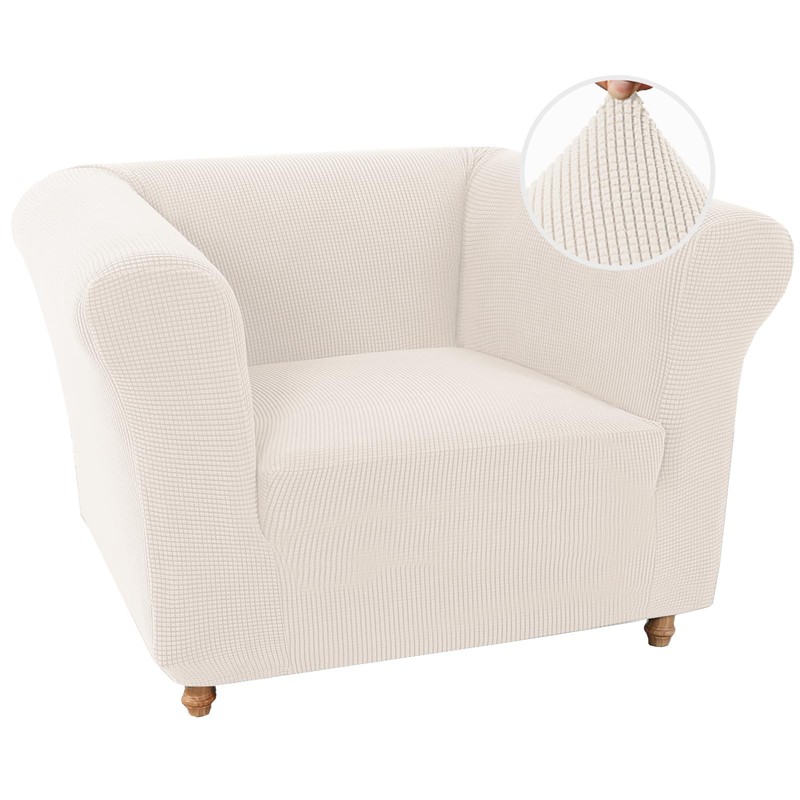 - PREMIUM STRETCH FABRIC: Our sophisticated 1-PIECE stretch jacquard slipcovers are crafted from 85% Polyester and 15% Spandex thickened jacquard fabric featuring small check pattern. This slipcover offers higher elasticity and durability compared to other ordinary covers due to its thickened design