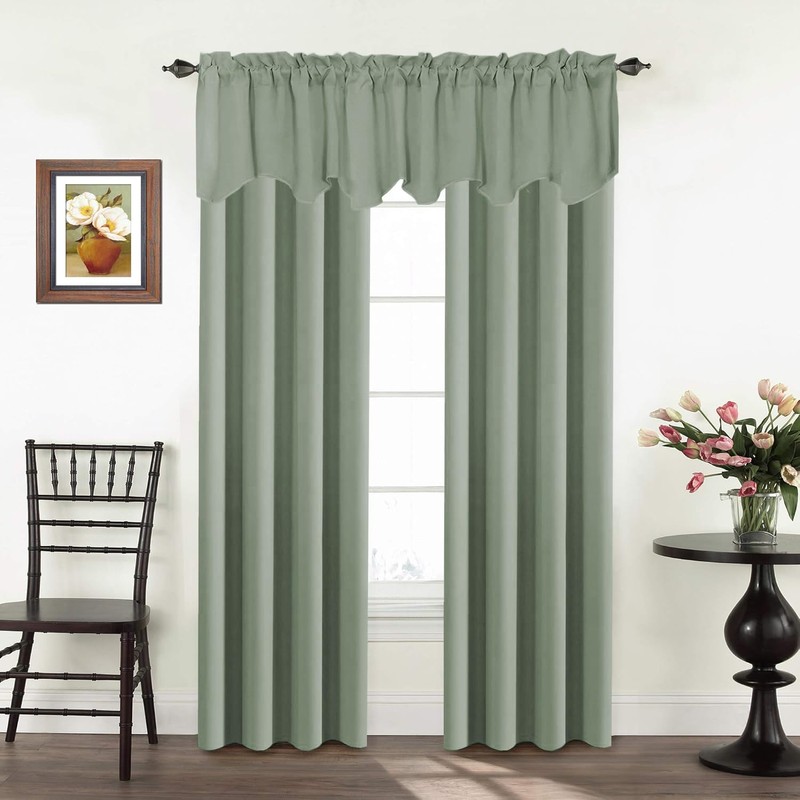 Turquoize Valances for Windows Solid Valance Curtains for Kitchen Windows/Living Room/Bathroom Rod Pocket Decoration Scalloped Window Curtains, 52" x 18" Inches, 1 Panel, Sage