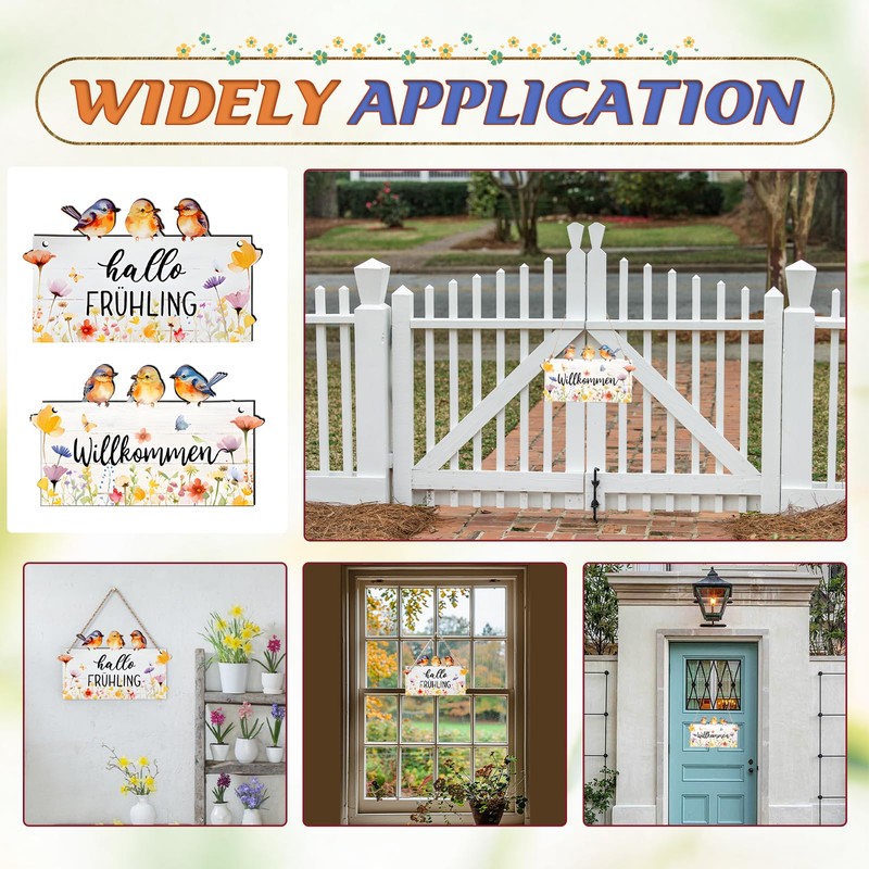 - Deko-Schild Frühling aus Holz mit Aufhängung: Das Willkommensschild Haustür besteht aus robustem Holz und ist beidseitig bedruckt. Mit der stabilen Juteschnur lässt es sich als Türdeko zum Aufhängen leicht an Haken, Nägeln oder Fenstergriffen befestigen – ideal für Innen und geschützten Außenbereich
