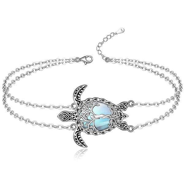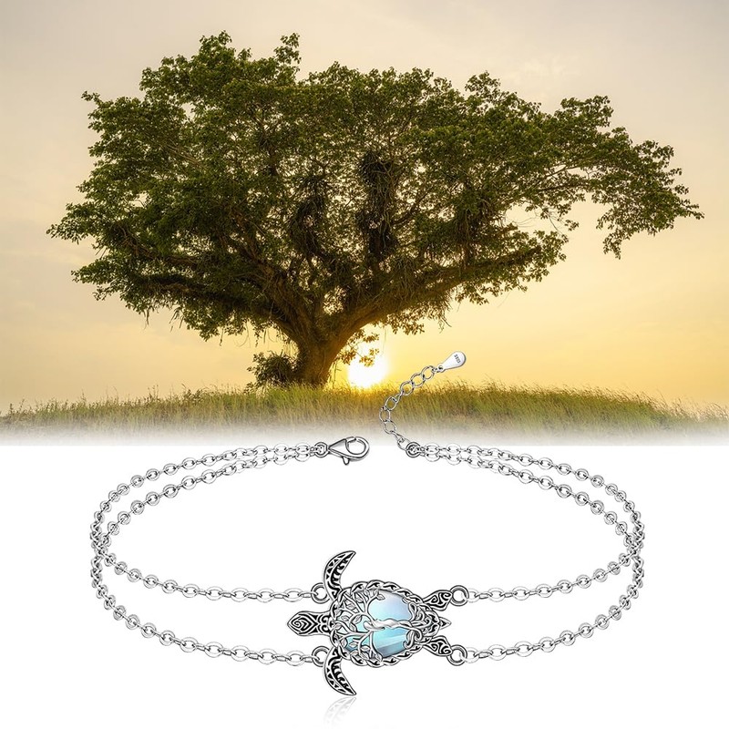 Turtle Anklet Tree of Life Sea Turtle Ankle Bracelets for Women Sterling Silver Moonstone Anklets Beach Ocean Jewelry Christmas Gifts