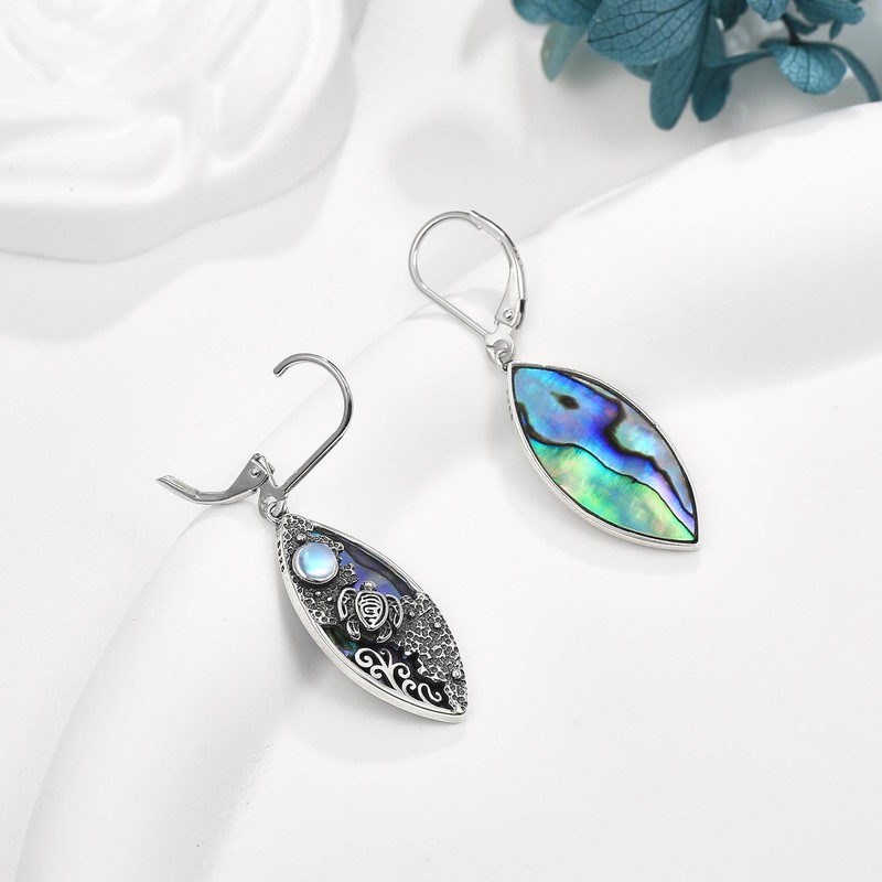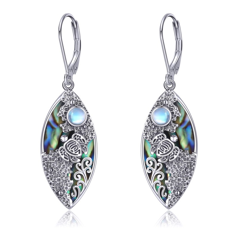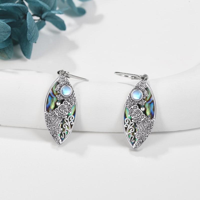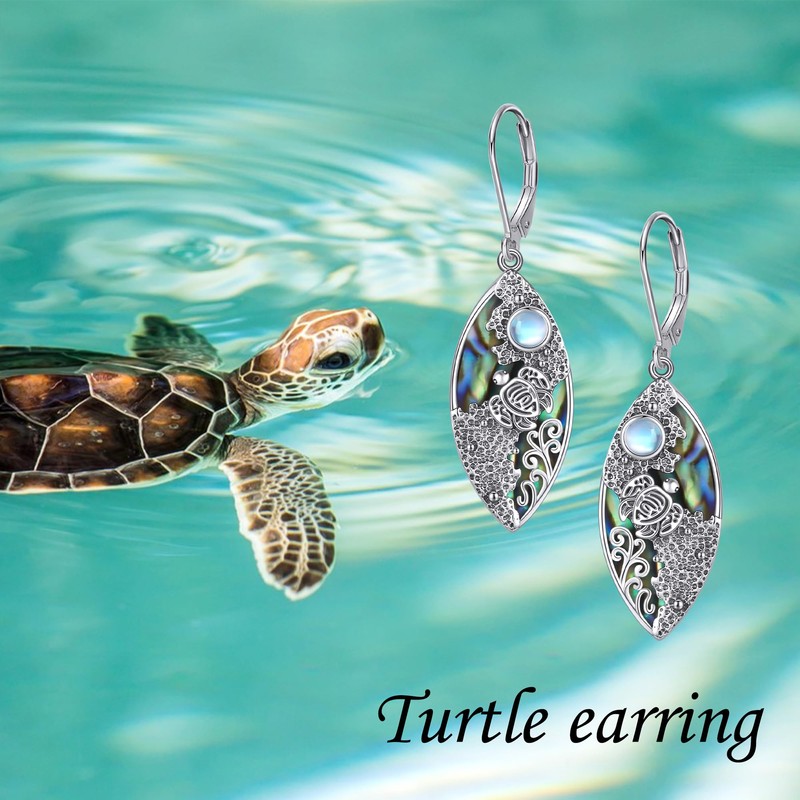 Turtle Earring Sterling Silver Moonstone Beach Dangle Drop Earring Sea Turtle Jewelry Gifts for Women