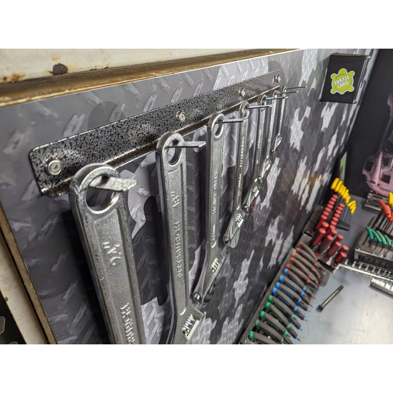 Turtle Laboratories Adjustable Wrench Tool Organizer Holder Display - Universal - Raw Steel, Large