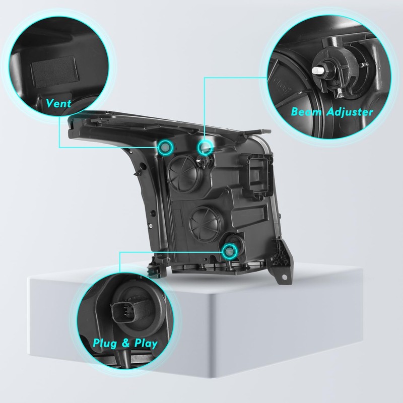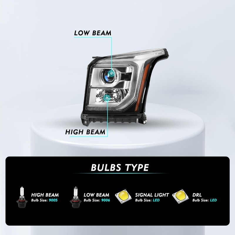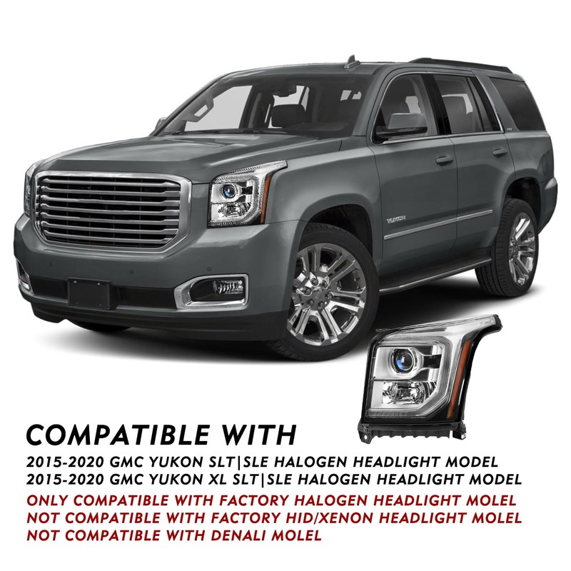 TUSDAR Headlights for 2015-2020 GMC YUKON SLT/SLE/XL SLT/SLE with LED DRL [Halogen OE Style] Projector Headlamp Replacement with Bulbs NOT FIT Denali Molel Left Driver Side