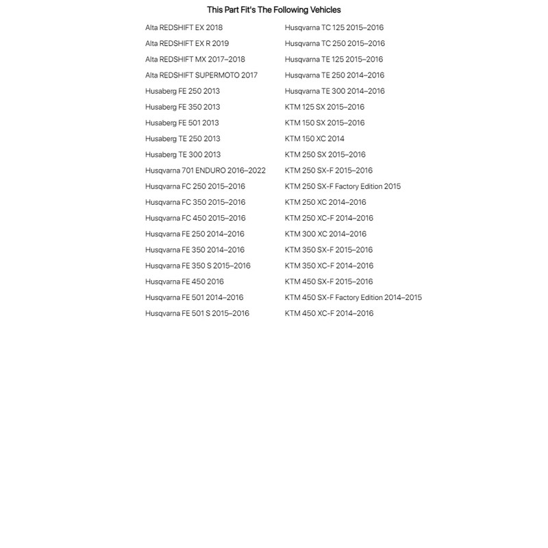 • Fits KTM, Husqvarna, and Husaberg with 4cs forks.