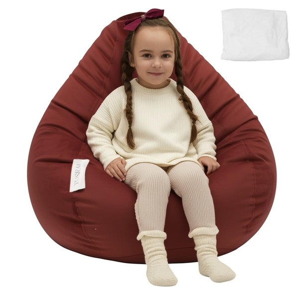 Tusrai Bean Bag Cover with Liner Only Washable Ultra Soft Stretch Faux Suede Velvety Bean Bag Chair Cover for Teens and Childrens (No Filler) Pear Style Medium - Burgundy Red