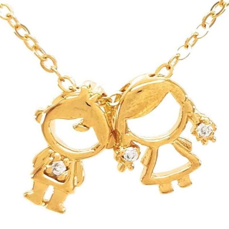 Tutti Joyería Artesanal | Collar de Hijos Personalizable - Hija - Hijo - Hija y Hijo - 2 Hijas - 2 Hijos - 2 Hijas y 1 Hijo - 2 Hijos y 1 Hija - 3 Hijas - 3 Hijos - Chapa de Oro Premium (e. 1 Hijo y 1 Hija)
