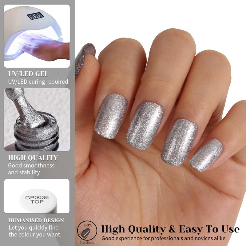 - Easy application: The smooth and creamy texture of this silver sparkly gel nail polish makes it effortless to apply, providing even coverage and minimizing the chances of streaks or clumps.