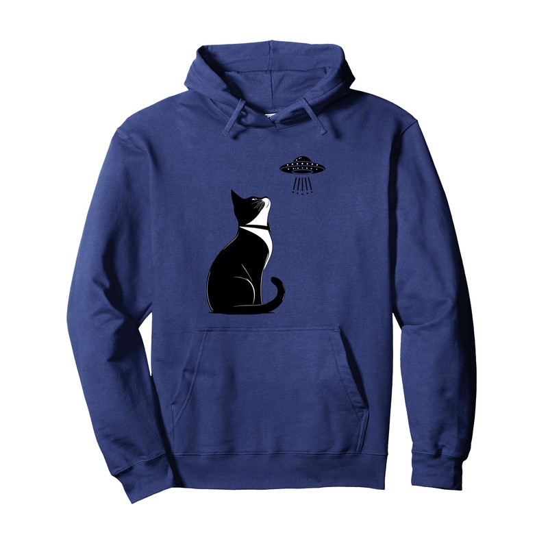Tuxedo Cat UFO T-Shirt Funny Alien Cat Lover Gift Whimsical Pullover Hoodie