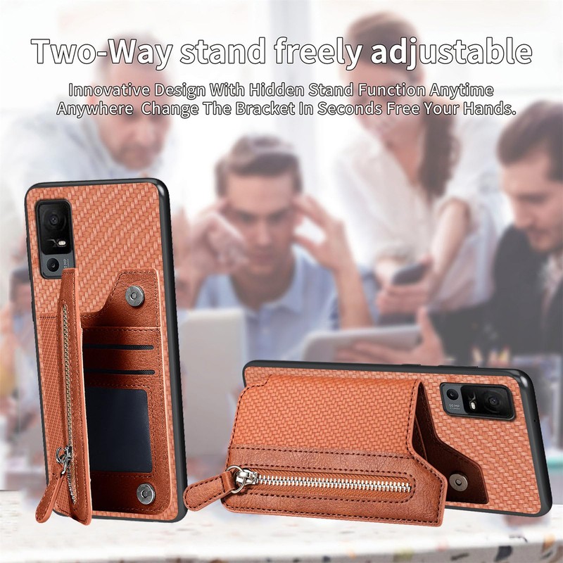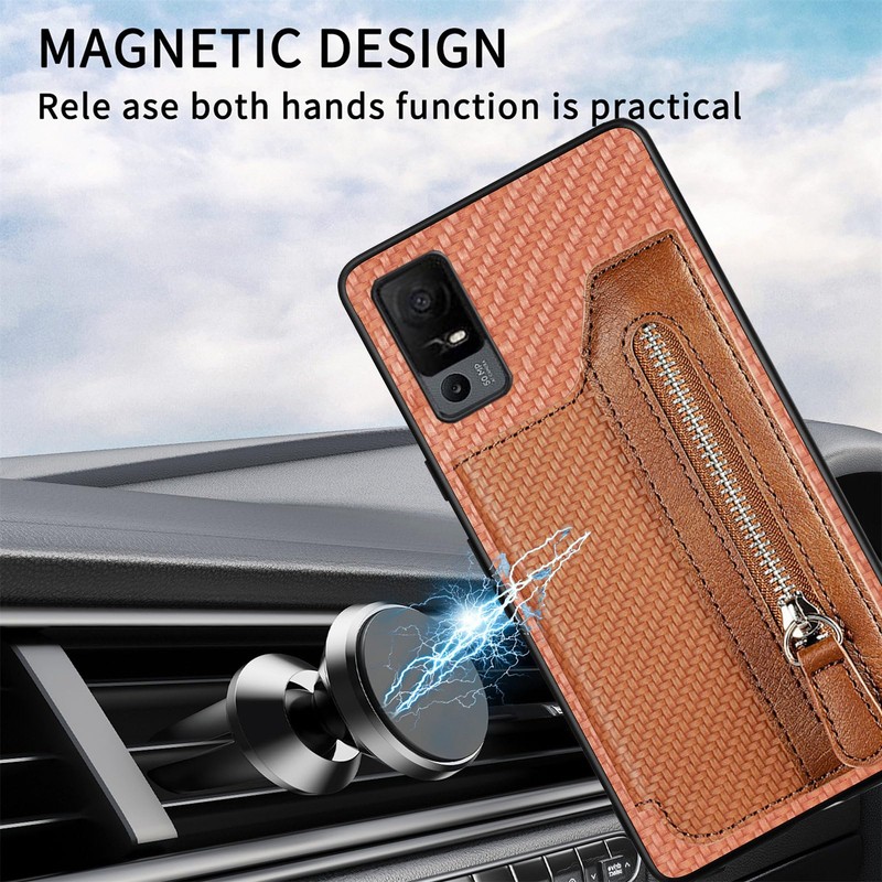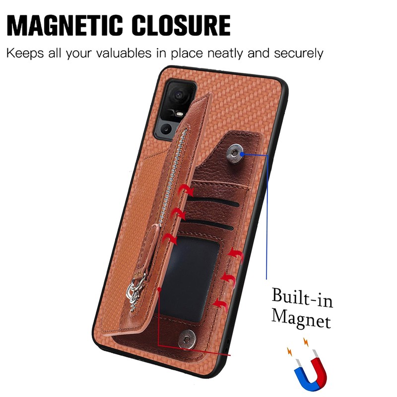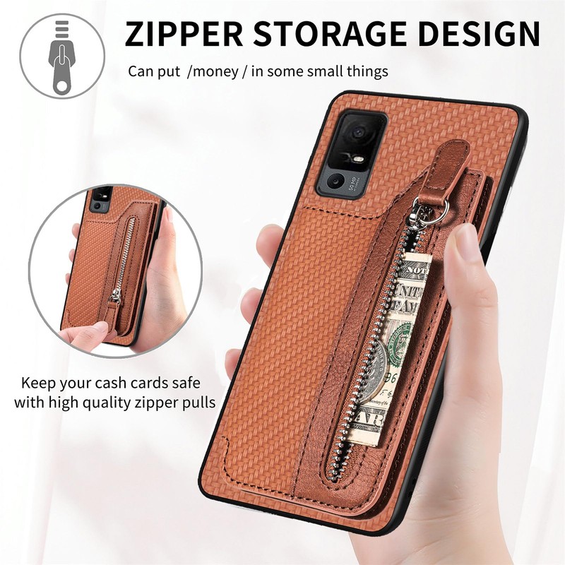 Tuxiwei Case for Jitterbug smart4, Premium Embossed Carbon Fiber Pattern Jitterbug smart4 Back Wallet Case with Credit Card Slot Holder PU Leather Zipper Wallet [4 Cards] [Car Mount Function] -Brown