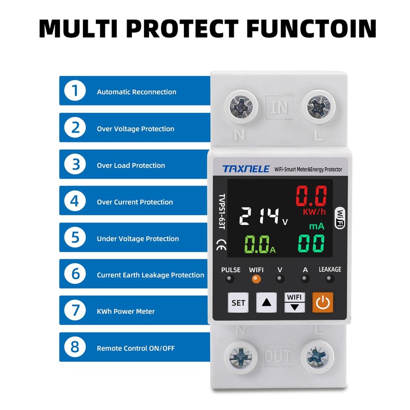 - 【Multifunktions-Energiezähler】 Das Multifunktions-Elektrozähler ist entworfen, um den Stromverbrauch zu überwachen. Ausgestattet mit einem großen LCD-Display, das Spannung, Strom und Leistung anzeigt. Benutzer können einfach Über-/Niederspannung, Strombegrenzung, Leckstromalarm und Wiederverbindungszeit konfigurieren.